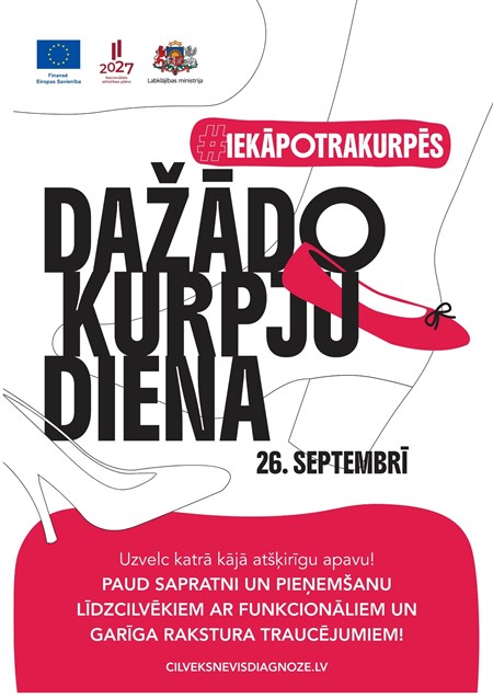 26. septembris būs diena, kad Latvijas Futbola federācija un Labklājības ministrija aicina uzvilkt katrā kājā atšķirīgu apavu, tādējādi simboliski „iekāpjot otra kurpēs” un paužot atbalstu cilvēkiem ar funkcionāliem, tai skaitā garīga rakstura traucējumiem. Tā ir vienkārša, bet spēcīga iespēja apliecināt, ka dažādība nav šķērslis, bet bagātība, kas stiprina mūsu sabiedrību un uzņēmējdarbības vidi. Aicinām arī futbolistus spēles vai treniņus aizvadīt ar dažādu krāsu futbola bučiem.