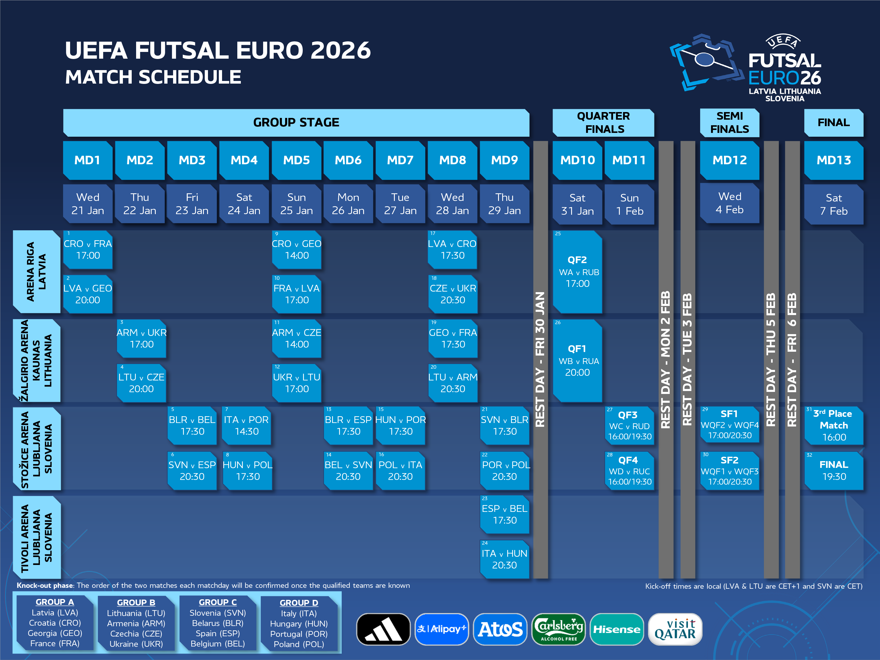 UEFA FUTSAL EURO 2026 GRUPAS: